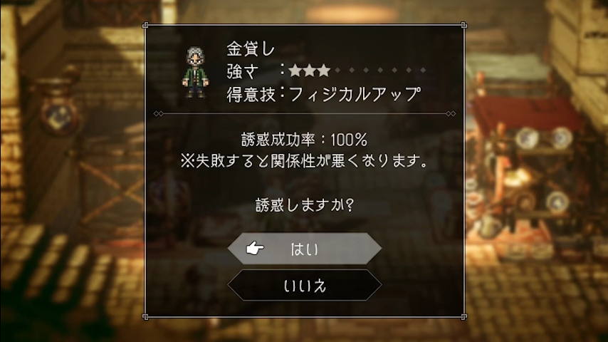 踊り子プリムロゼのフィールドコマンドは「誘惑」