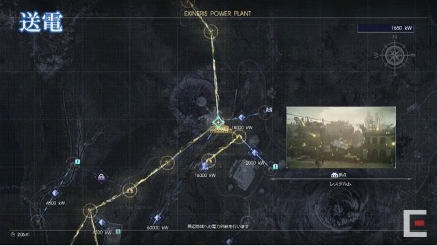 闇に包まれてしまった世界であるため、「メテオのかけら」で電気を作り、送電網を広げて光を照らしていくことが大事とのこと。