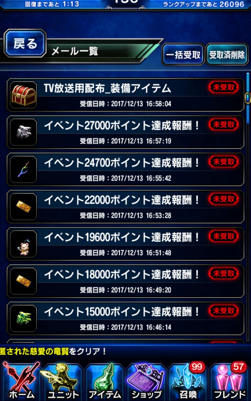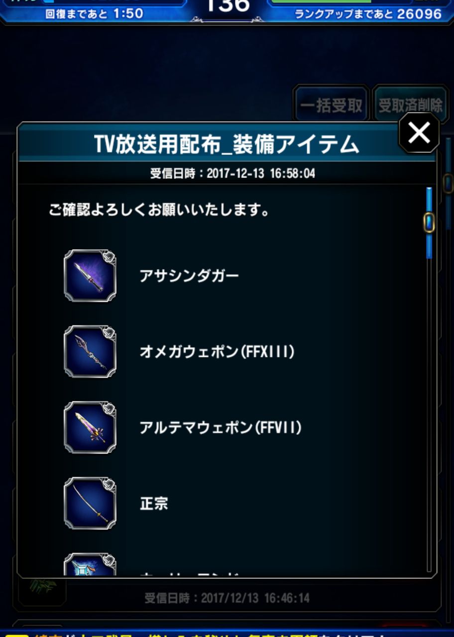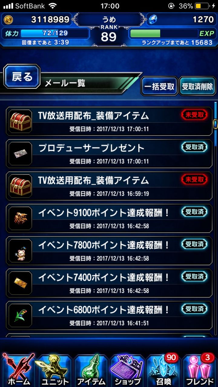 当日0時開放のユニット(FF8リノア)を、それ以前に入手していたアカウントが存在し