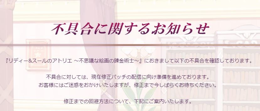 お客様にはご迷惑をおかけいたしますが、修正まで今しばらくお待ちください。
