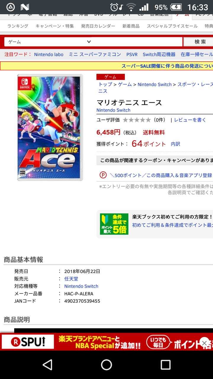 Switch マリオテニス エース 6月22日
