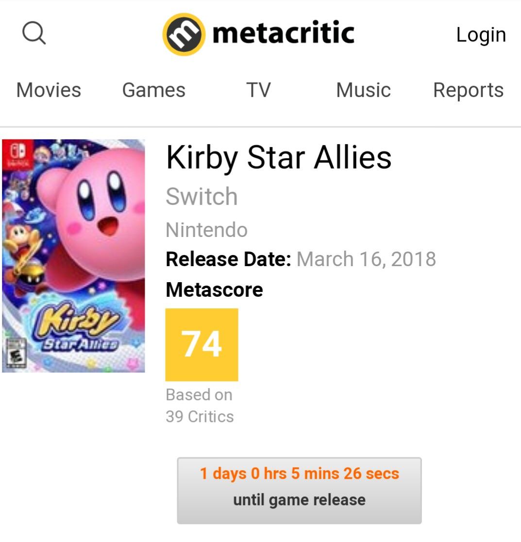 他カービィ作品との点数比較をみたら、それ自体は妥当かな とも思ったけどエアライドが61点で一気に当てにならんくなったわ