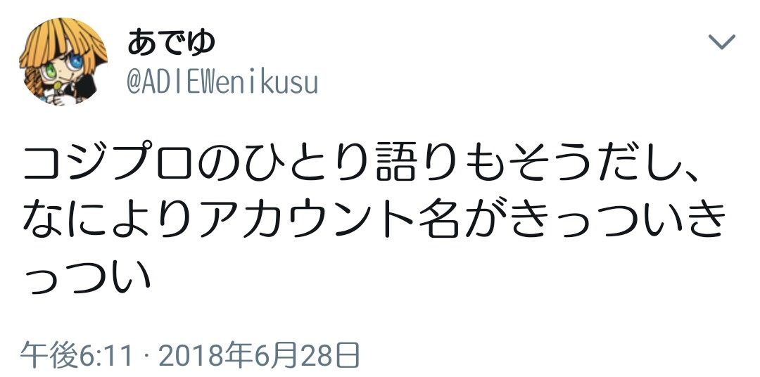 コジプロのひとり語りもそうだし、なによりアカウント名がきっついきっつい