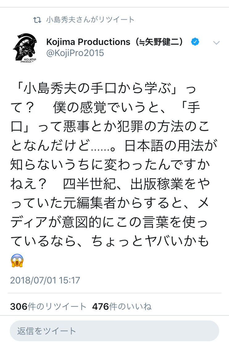 こんなことに反応する小島も小さいけど、書いてる方もクソだな。「ちっ、うっせーな。反省してまーすw」