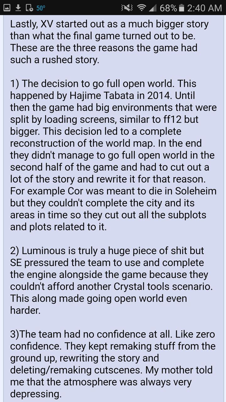例として、コルはソルハイムで死ぬプロットだったが、ソルハイムを完成できなかったのでそこに関連したストーリーは全部カットされた。